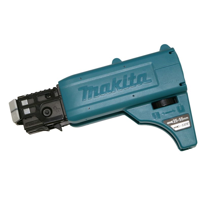 The Makita 191L24-0 (formerly 199146-8) Collated Autofeed Screwdriver Magazine Attachment delivers easy and reliable autofeed capability. The compact, ergonomic autofeed design offers less weight and efficient power. Its ideal for production board attachment to metal or wood. Collated screw length capacity ranges from 25mm to 55mm for increased versatility. For use with specific Makita corded and cordless screwdrivers.