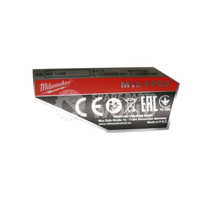 Milwaukee Rating Plate
