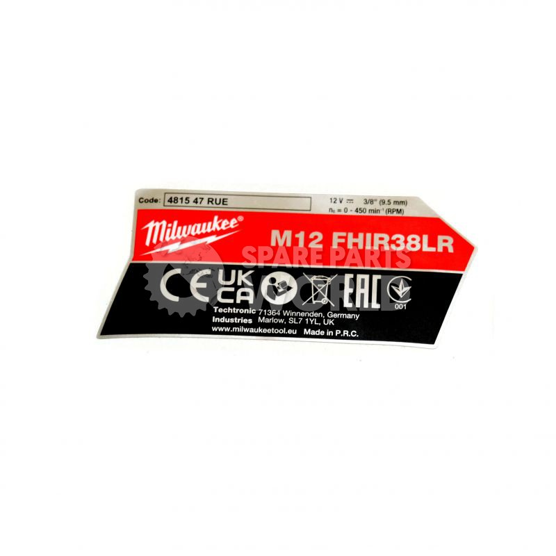Milwaukee Rating Plate