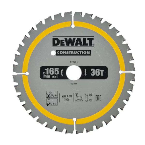 DeWalt 165mm x 20mm 36T Construction Circular Saw Blade - DT1950-QZ