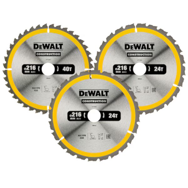 The 3 Piece DT1962 Construction Circular Saw Blade Pack contains the following: