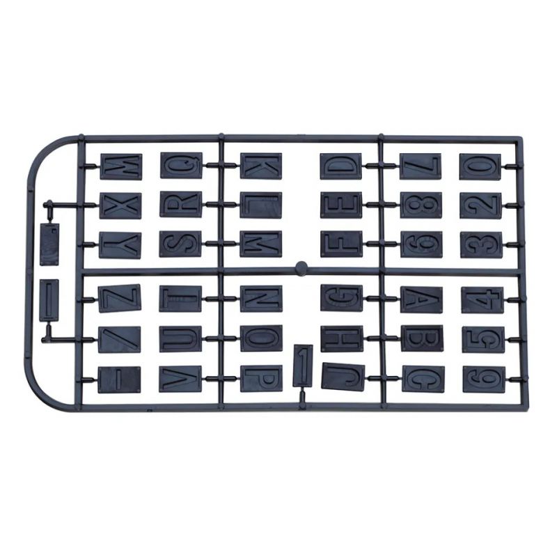 Letters A - Z, incl. hyphen, full stop and slash. Also numbers 0 - 9. For use with guide bar of the GE 20.
