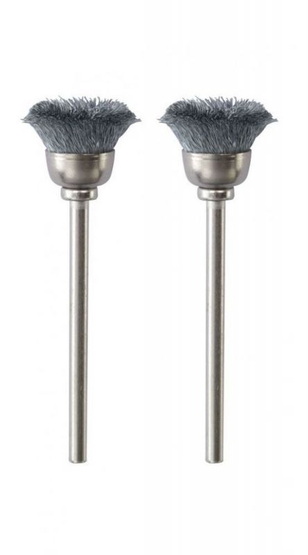 Note: Permit the brushes to work only with gentle contact pressure and at the recommended rotational speed! If the pressure is too high, the individual wires will be bent too strongly and afterwards straighten up again due to the centrifugal force. This excessive flexural fatigue stress of the wires on their seating promotes the notch effect. They are prone to breakage.