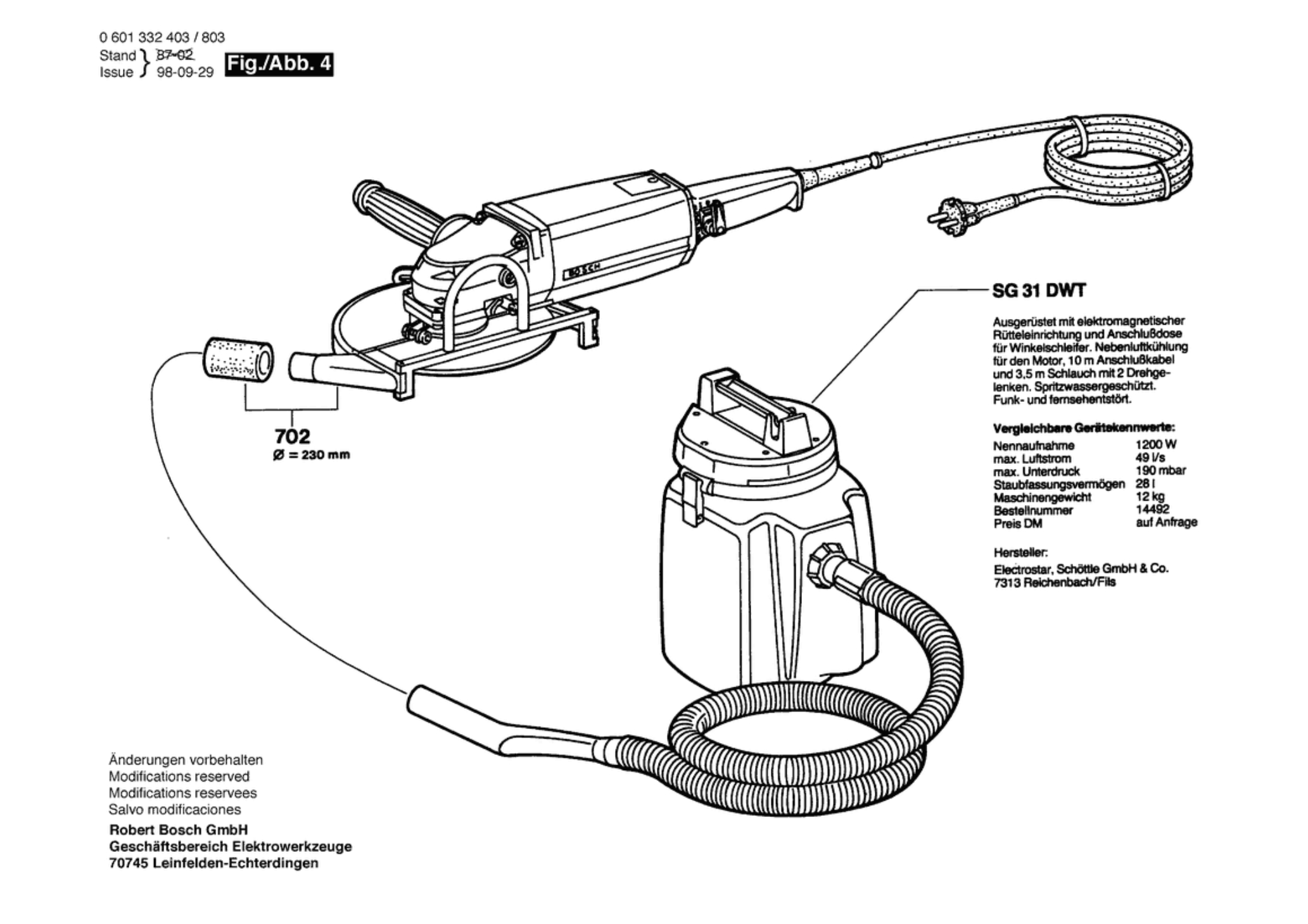 Bosch 0 601 332 832 1332.8 Angle Grinder 220 V / 004 - CH Spare Parts