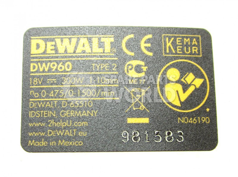 DEWALT DW960 RIGHT ANGLE DRILL (TYPE 1) Spare Parts