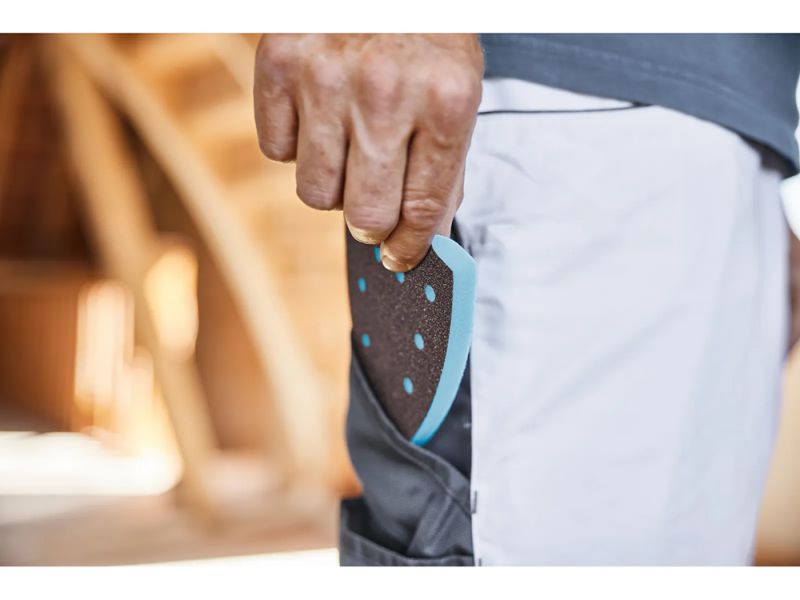 Its soft foam core, consisting of 13 mm polyurethane, adapts perfectly to the surface of the workpiece. This ensures uniform pressure distribution, effectively preventing breakthrough sanding and the formation of grooves.