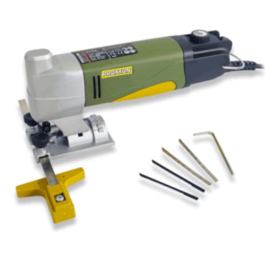 Stable head of die-cast zinc for precise fitting. The housing head is made of glass-fibre reinforced POLYAMIDE. Special balanced, low noise DC motor with high life expectancy. The stroke speed is variable by means of full wave electronic speed control. Footplate adjustable up to 45° for mitre cuts. Ideal for tight curves in wood (up to 12mm), PC cards to 5mm and non-ferrous metals to 3mm. Complete with 4 Super-Cut sawing blades of various pitches for wood, plastic and metal. Safely stored in an attractive and extremely stable case made from high-grade polypropylene.