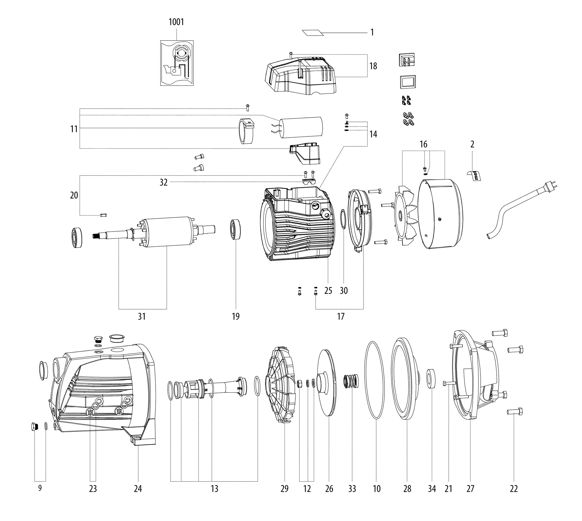 Metabo Garden Pump 1900w 9000L/h 00967000 P 9000 G EU 230V Spare Parts
