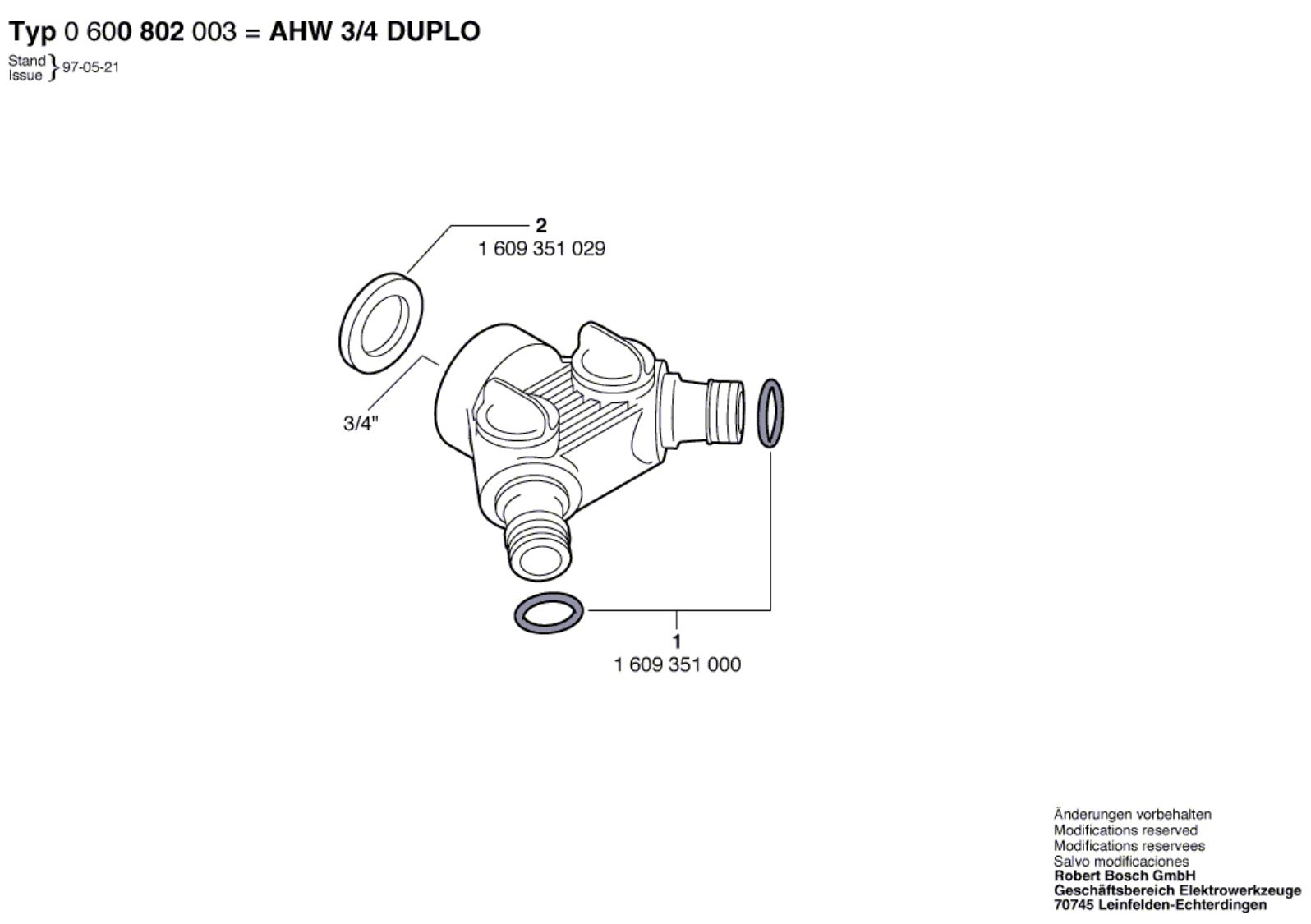 Bosch 0 600 802 003 Ahw 3/4 Duplo Tap Connection Piece Spare Parts