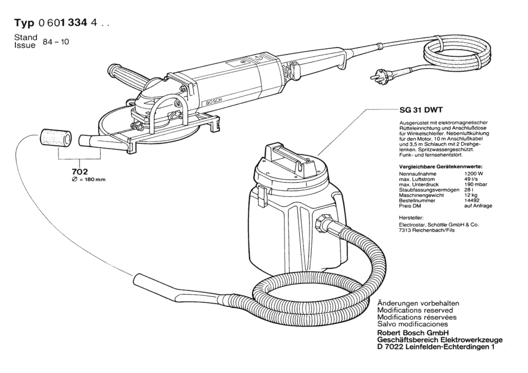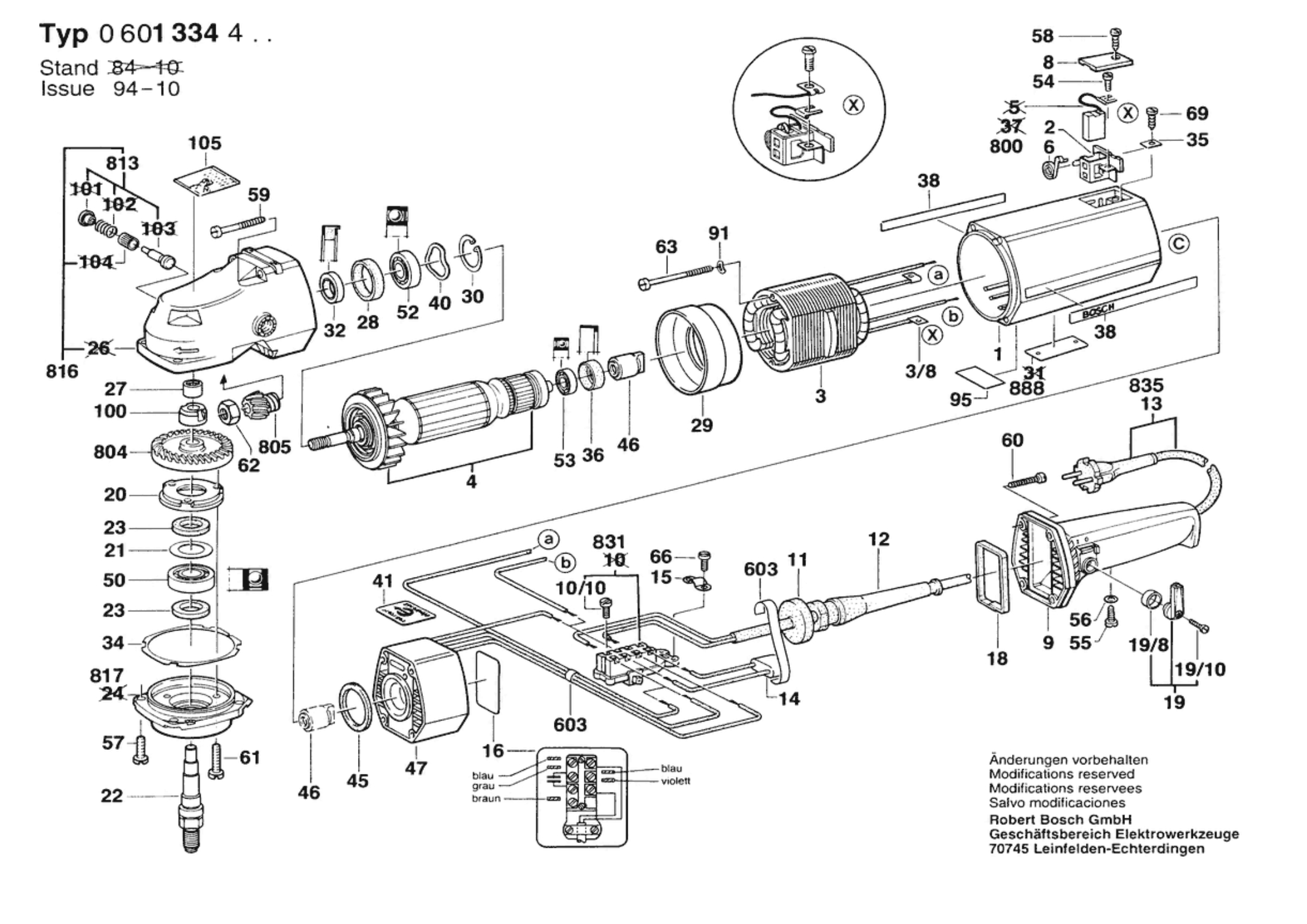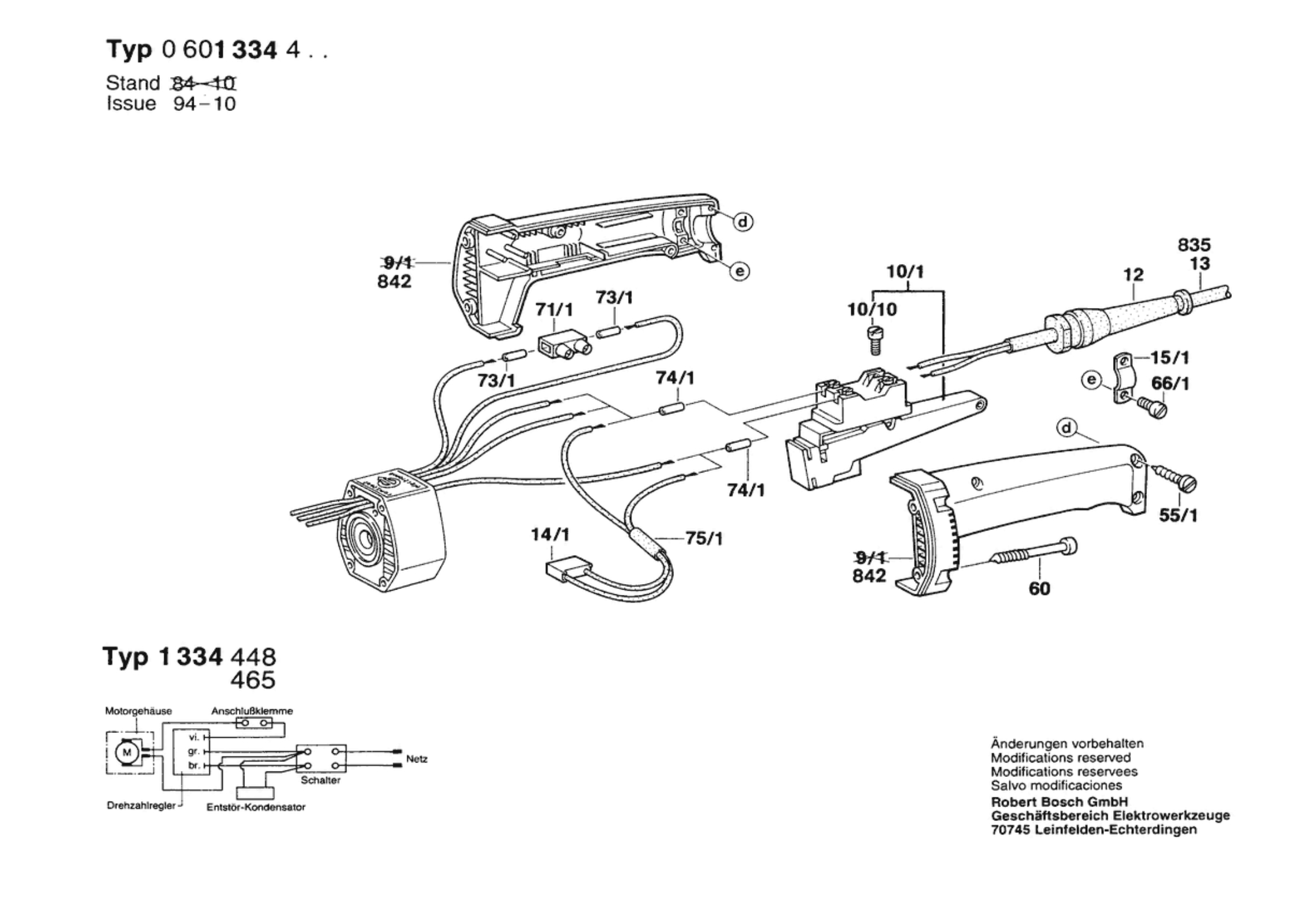 Bosch 0 601 334 465 1334.4 Angle Grinder 220 V / 034 - FI Spare Parts