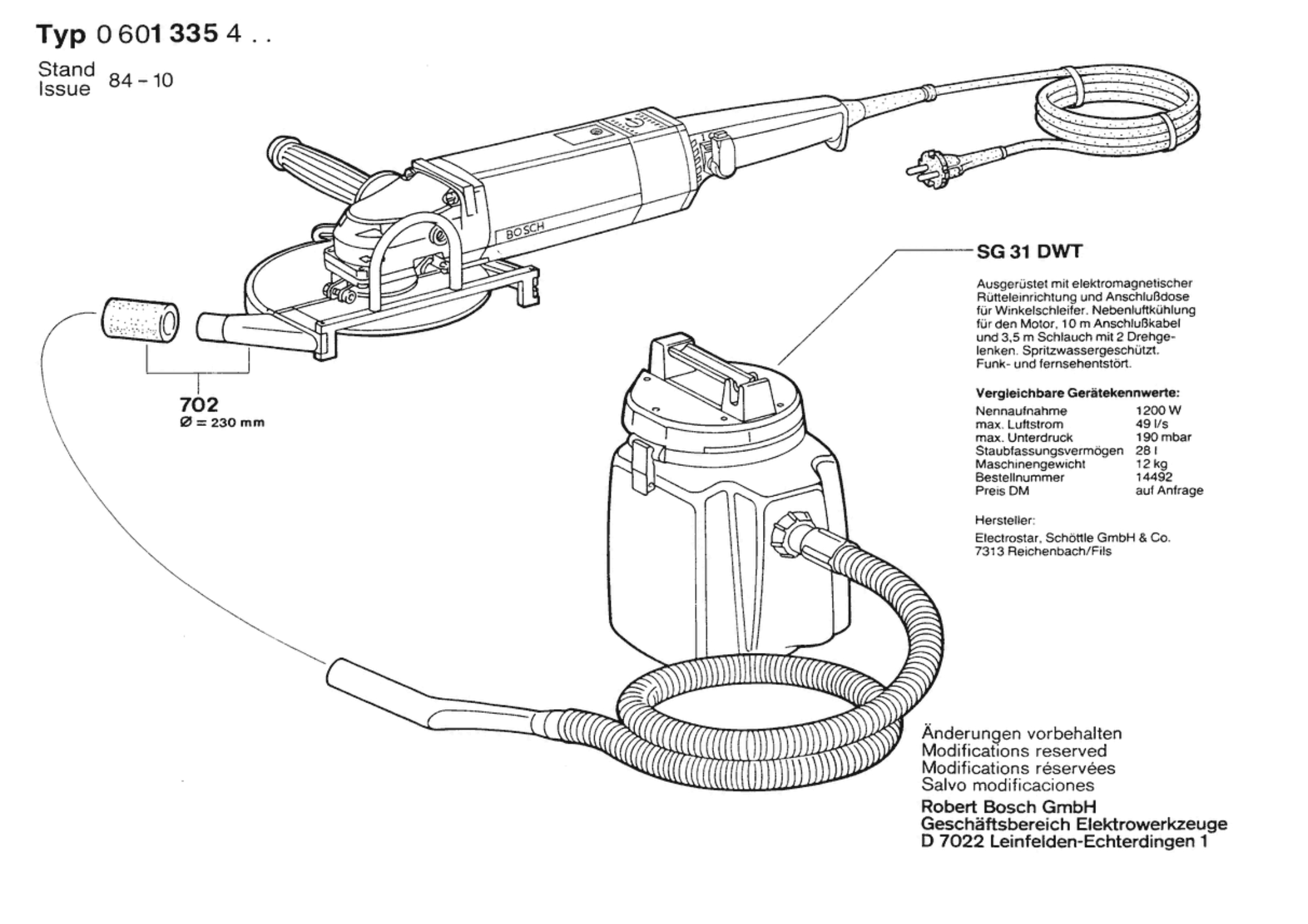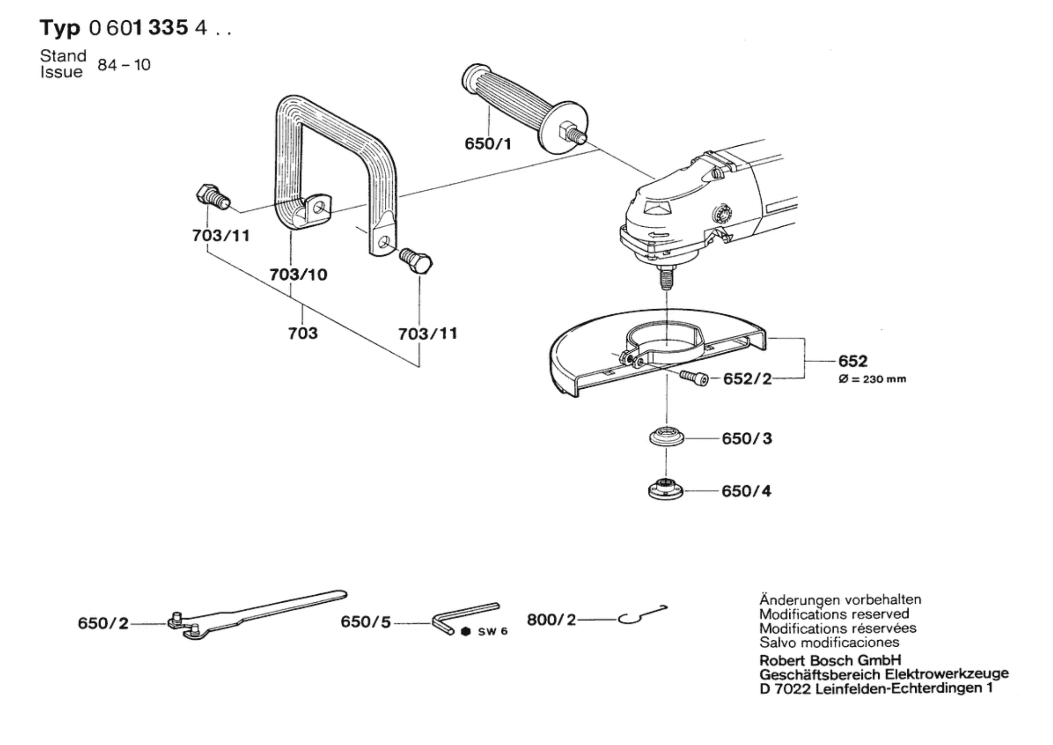 Bosch 0 601 335 432 1335.4 Angle Grinder 220 V / 004 - CH Spare Parts