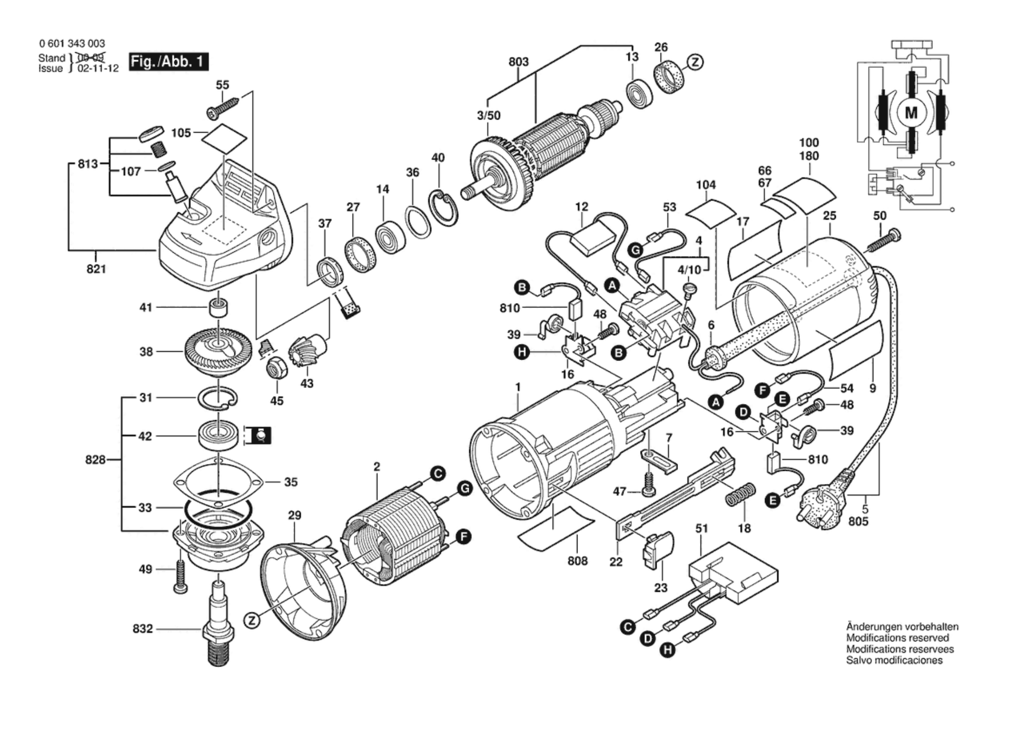 Bosch 0 601 343 032 GWS 9-125 CS Angle Grinder 230 V / 004 - CH Spare Parts