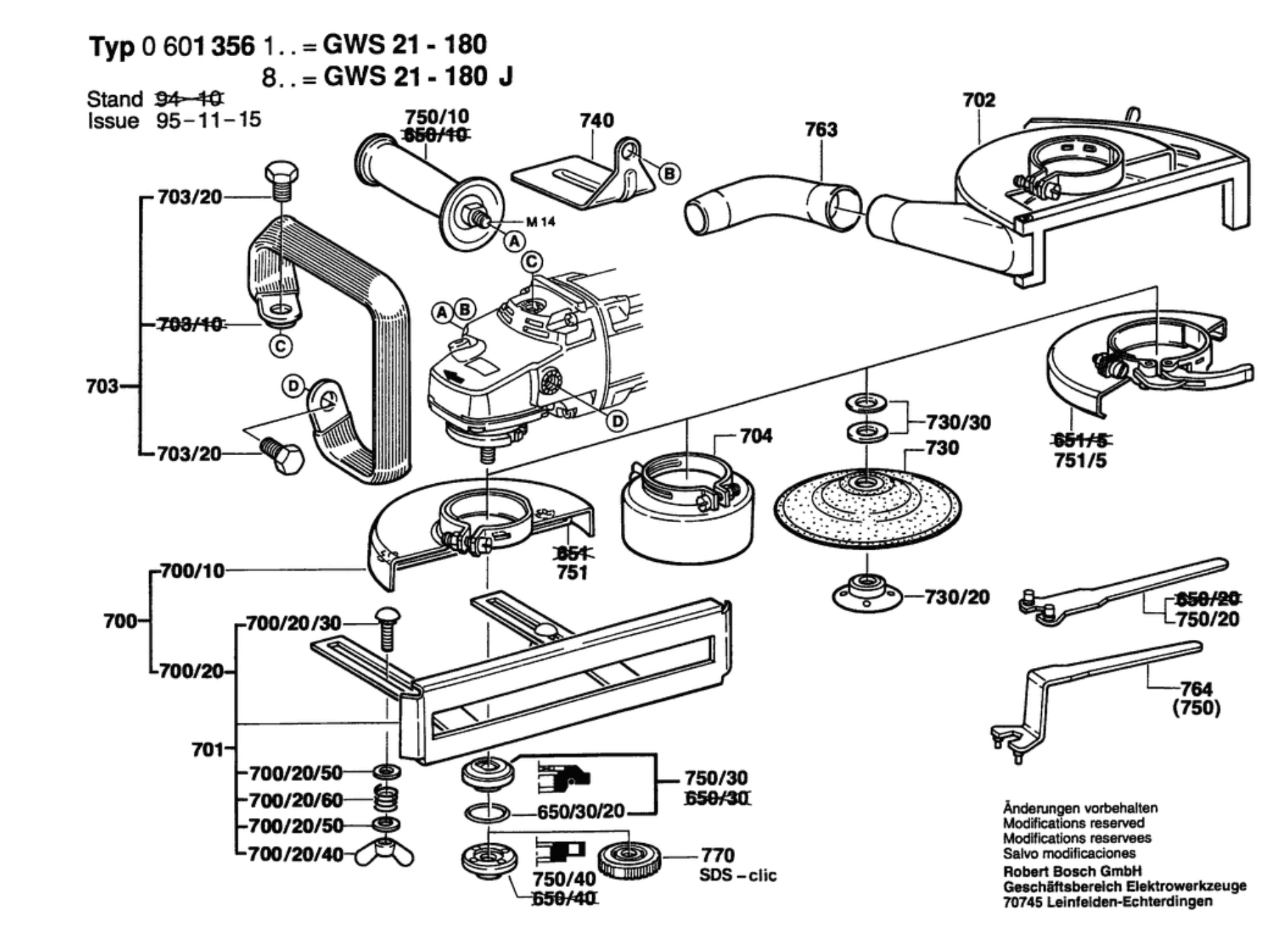 Bosch 0 601 356 865 GWS 21-180 I Angle Grinder 230 V / 055 - SE Spare Parts
