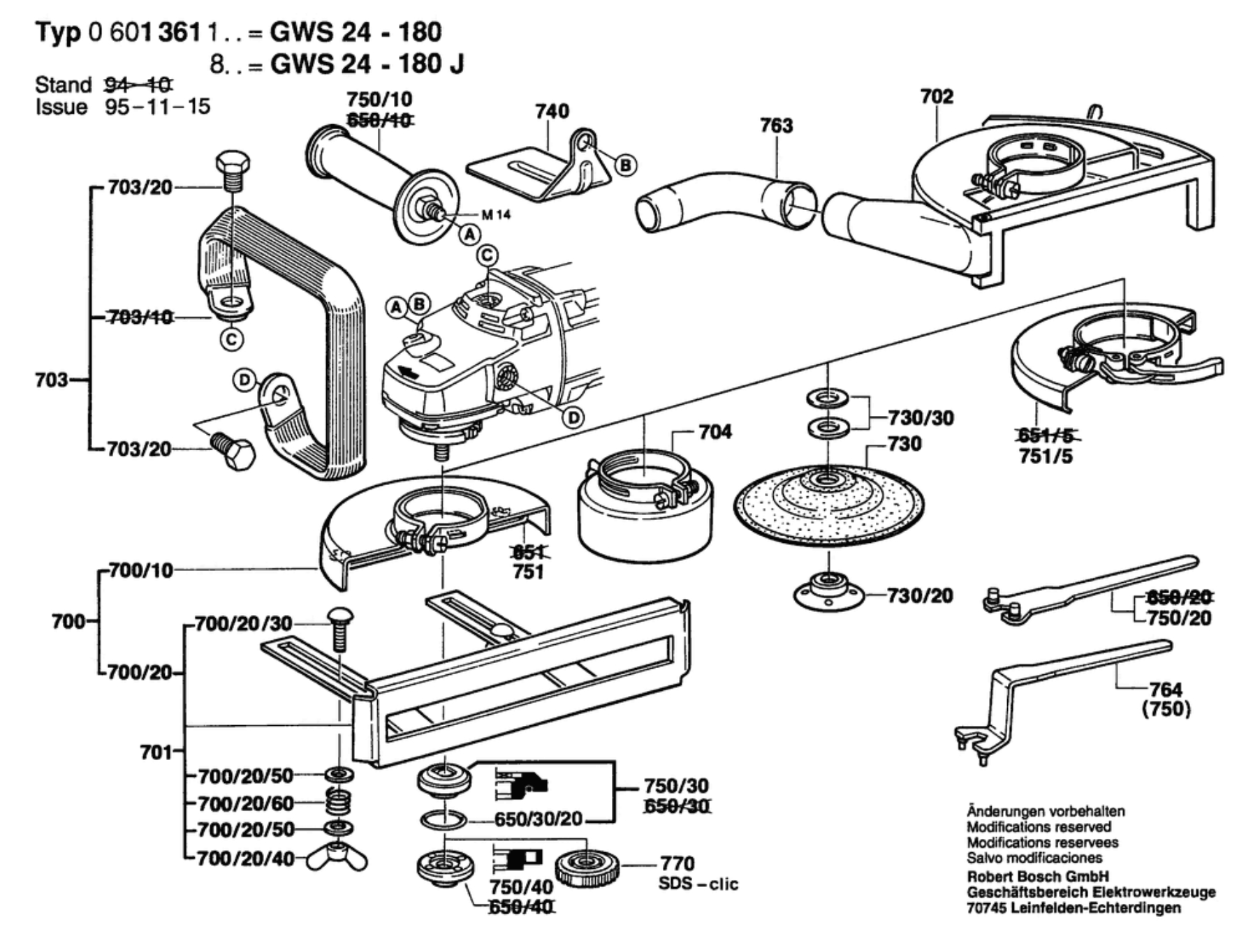 Bosch 0 601 361 150 GWS 24-180 S Angle Grinder 230 V / 043 - IT Spare Parts